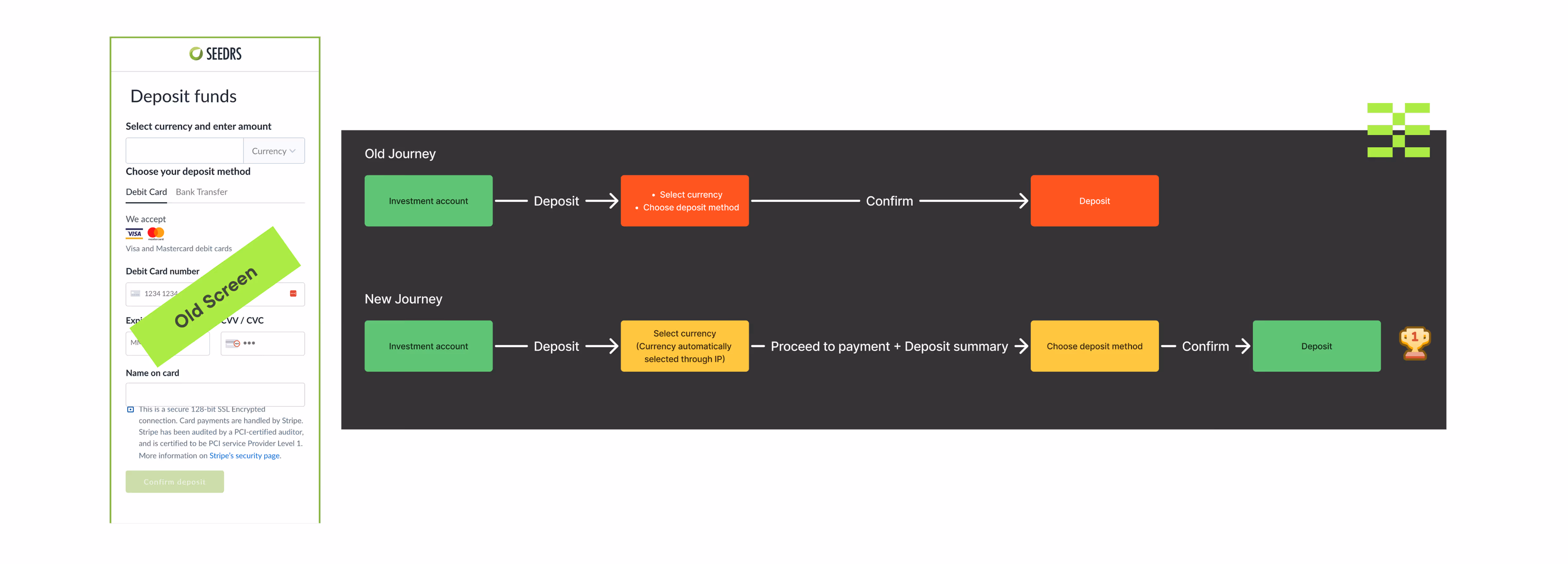 - Since launching the new deposit journey, incorrect currency tickets dropped by 40%,as the currency is now preselected. Additionally, the investment amount ratio has risenby 10% compared to the previous quarter.